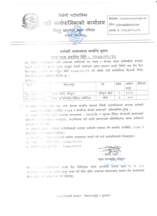 कर्मचारी आवश्यकता सम्वन्धी सुचना ।