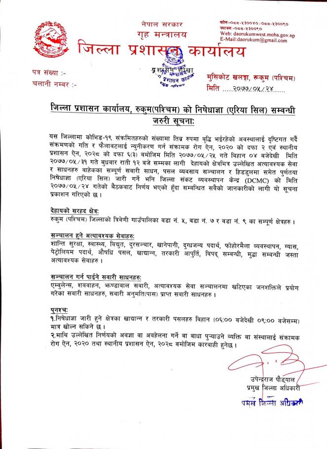कोभिड-१९ कोरना भाइरस रोकथाम तथा नियन्त्रण सम्बन्धि जनहितमा जारी सुचना